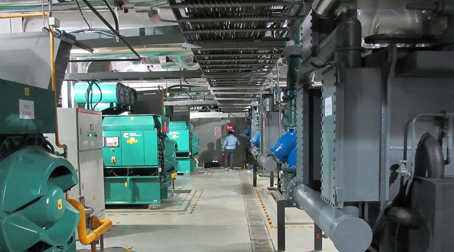 能源站機(jī)組的轟鳴聲被高科技降噪措施神奇地限制在機(jī)房空間內(nèi)。
