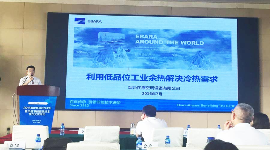 “2016節(jié)能低碳技術(shù)合作論壇暨中德節(jié)能低碳技術(shù)合作交流論壇”于7月28日在煙臺高新區(qū)舉行。作為余熱余壓清潔利用的領(lǐng)軍企業(yè),煙臺荏原受邀參加了本次論壇,并在會上做了《利用低品位工業(yè)余熱解決冷熱需求》的主題報告,受到了廣泛的關(guān)注和好評。