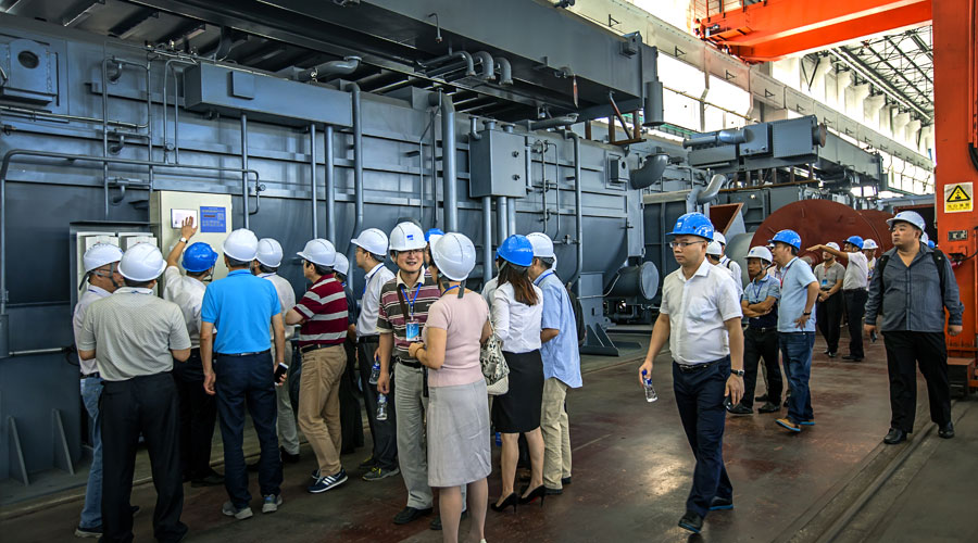 專家們先后參觀了荏原冷熱(中國(guó))吸收式工廠、電制冷和冷卻塔工廠兩大廠區(qū),零距離考察了荏原的制造環(huán)境和產(chǎn)品的組裝工序?;馃岫行虻闹圃飕F(xiàn)場(chǎng),鱗次櫛比、種類繁多的大型冷熱設(shè)備,荏原為諸位專家呈現(xiàn)了一番宏大的制造場(chǎng)面。在這里可以看到制造中的大型防爆余熱利用型制冷機(jī)、單機(jī)冷量1000萬大卡/小時(shí)的吸收式制冷機(jī)、單機(jī)制熱能力50MW的大型吸收式熱泵和一臺(tái)臺(tái)包裝完好、整裝待發(fā)的離心式冷水機(jī)組……荏原圍繞冷、熱事業(yè)展示出的整體產(chǎn)業(yè)鏈及專業(yè)的定制實(shí)力感染了每位與會(huì)專家,紛紛感嘆”原來荏原的吸收式制冷機(jī)、吸收式熱泵可以做得這么大!“、”荏原離心機(jī)竟然有這么大的產(chǎn)銷量!、“荏原太低調(diào)了,這么多好的產(chǎn)品應(yīng)該多推廣,讓更多的設(shè)計(jì)師知道!”……