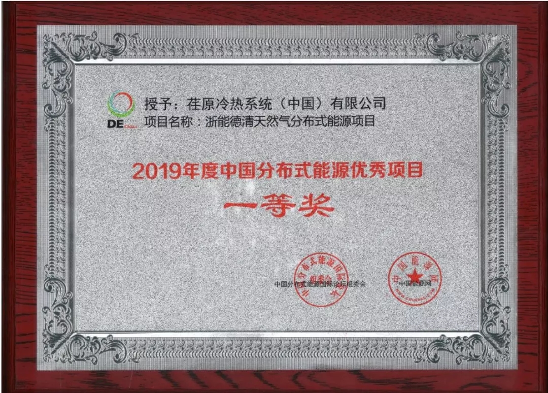 值得一提的是,荏原為浙能德清天然氣分布式能源站提供集中供冷供熱項(xiàng)目也榜上有名,被評選為2019中國分布式能源**項(xiàng)目獎:一等獎。