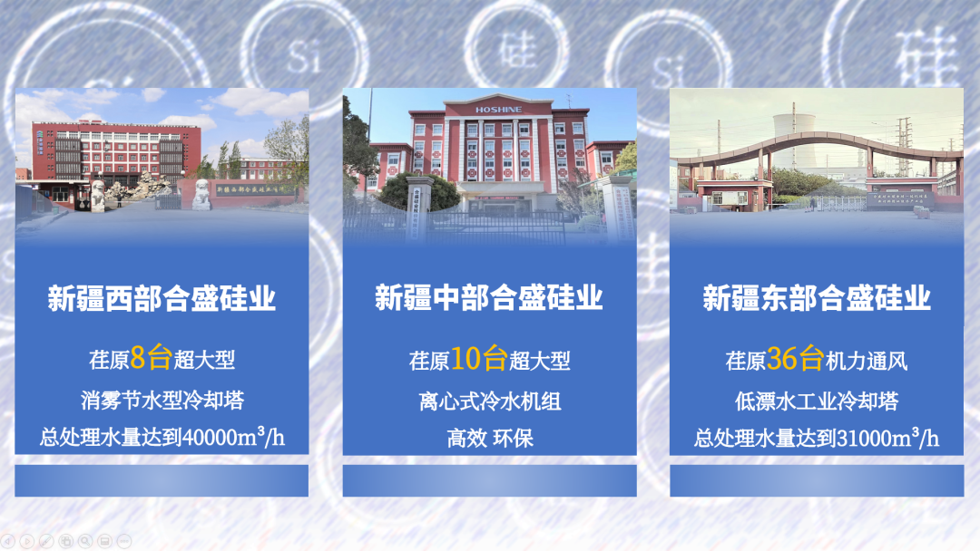 品牌選擇品牌,高端認(rèn)可高端,合盛硅業(yè)至今已經(jīng)在新疆西部合盛硅業(yè)、新疆中部合盛硅業(yè)、新疆東部合盛硅業(yè)三大基地選擇荏原的高端產(chǎn)品,產(chǎn)品涵蓋高效離心機、大型消霧節(jié)水型冷卻塔和低漂水工業(yè)冷卻塔。荏原將用穩(wěn)定的產(chǎn)品和先進的技術(shù),助推合盛硅業(yè)擴大在硅基新材料全產(chǎn)業(yè)鏈的布局,為合盛光伏新能源業(yè)務(wù)快速發(fā)展護航。